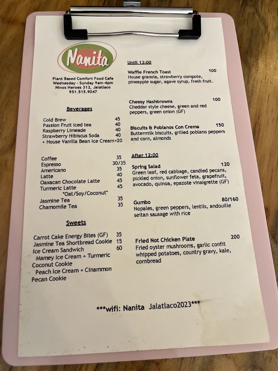 Nanita Menu